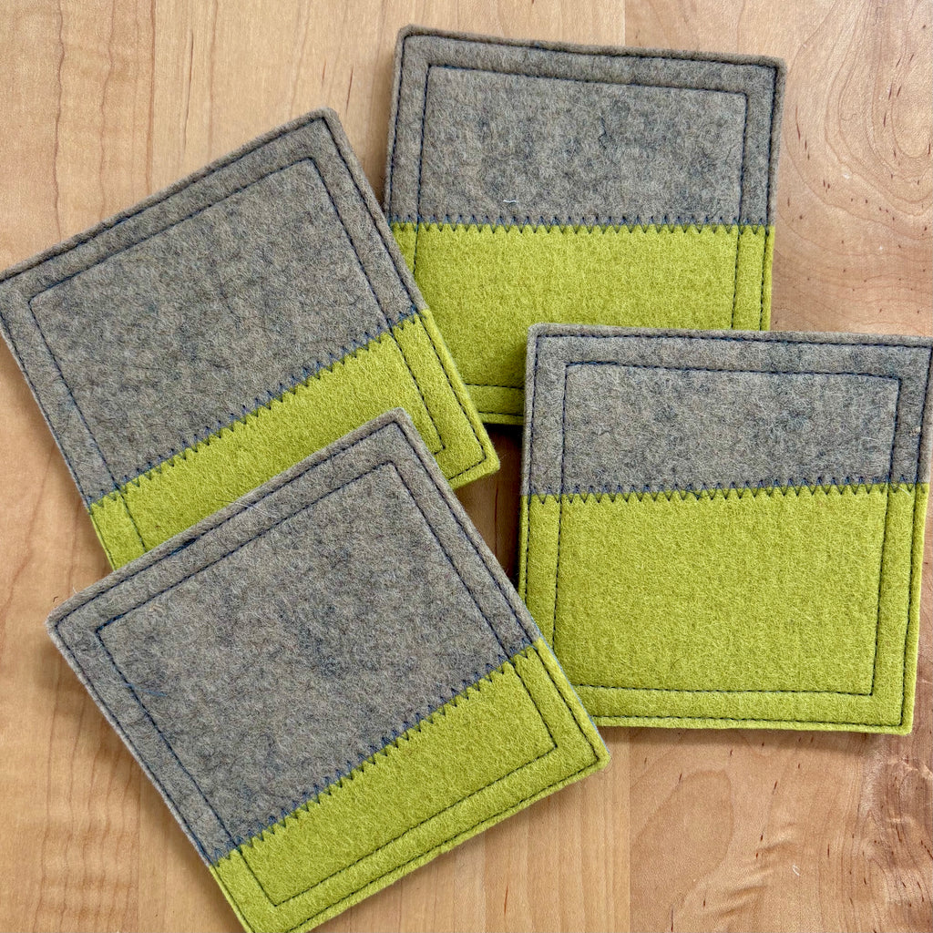 Made of 100% wool felt. Wool felt is naturally absorbent, offers thermal protection and has antimicrobial properties. It is gentle on surfaces and is stain resistant. It is a perfect material for coasters.
