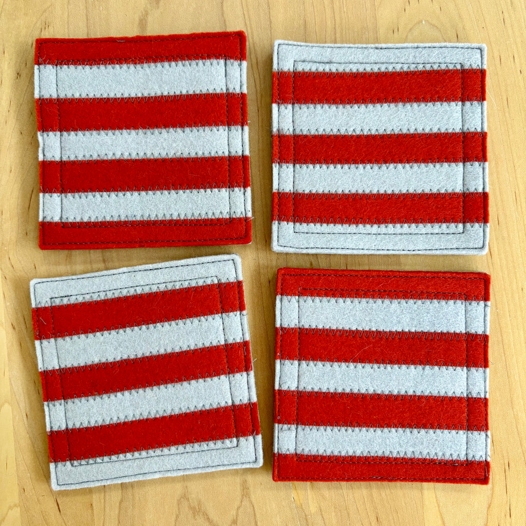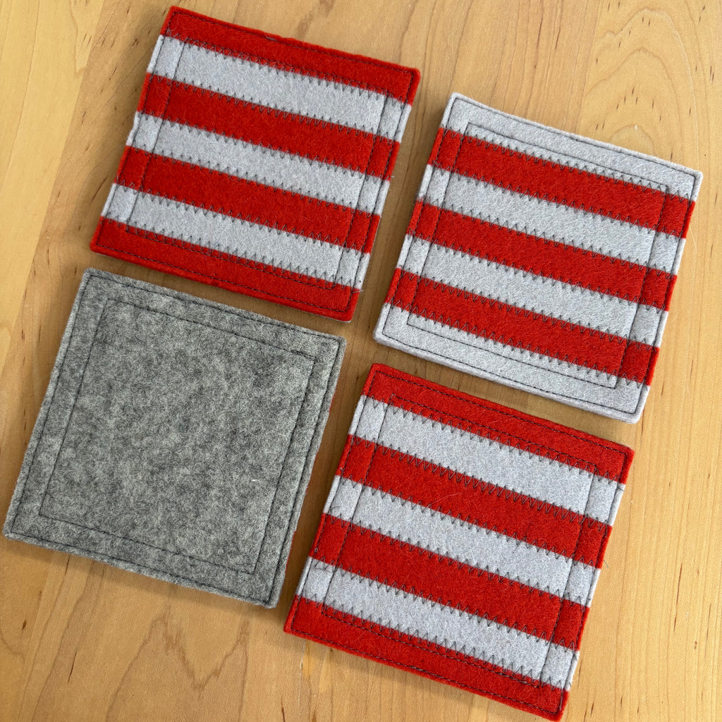 Made of 100% wool felt. Wool felt is naturally absorbent, offers thermal protection and has antimicrobial properties. It is gentle on surfaces and is stain resistant. It is a perfect material for coasters.